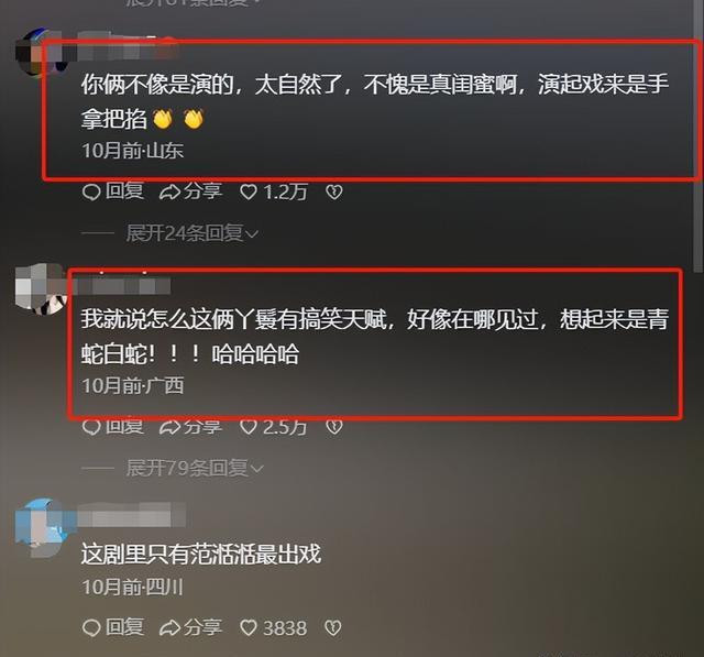 还有的默示:“笑剧东谈主其实不合适演电视剧,但张小婉的存在让东谈主咫尺一亮,很不错。”