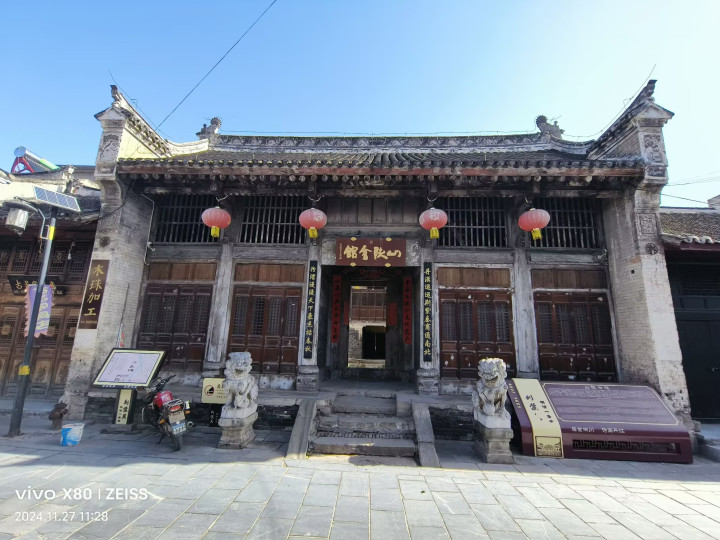 一缕秋阳从高处的窗棂斜射而入,照亮了空气中大量飞舞的、金色的微尘。我仿佛能听到,在另一个时空的维度里,这里商贾云集,晋陕口音铿锵交错,乡党们在此议事、酧神、宴饮,那粗豪的笑声、戒备的誓词、算盘的脆响,曾如潮流般在这宏伟的梁柱与空间里飘舞、充盈。
