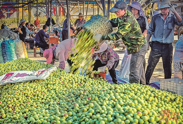 在饶平县新圩镇美艳圩镇客厅内,墙面上的展板尽数展示着新圩的历史、文化故事和风土情面,性格产物展销区内,青梅、山枣糕等性格农产物林林总总;绿好意思生态小公园里,可感可触的红色元素,加之打造的绿化景不雅,撑起一派失业空间,孩童嬉戏、老东谈主漫谈,训诫一番侵犯情状;走进广东梅业食物有限公司,工东谈主们忙着腌制、装袋、转运青梅蜜饯产物,这些小小的“酸果子”准备出口日本……