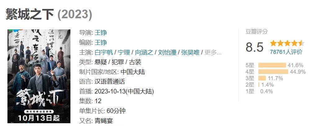 1、《繁城之下》答复的是明万历三十七年,江南小城蠹县发生了一系列奇诡的“论语”杀东说念主案,小考查曲三更、典史宋辰、白役高士聪、秀才凤可追等东说念主联袂办案,不但破解目前奇案,更是将二十年前的另一桩冤案一同揭开!