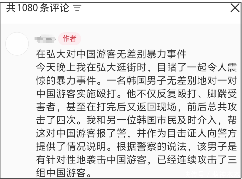 还有东谈主发现渊博有东谈主无分袂袭击中国旅客,打了一次还不够,反复殴打四次直到被制止,更离谱的是,打东谈主的韩国须眉还是相接袭击三组中国旅客了。