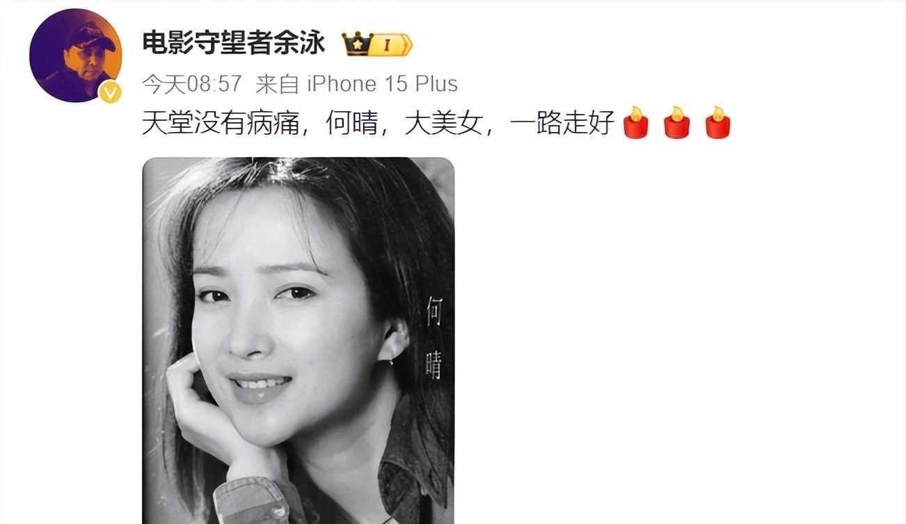 他在酬酢平台发布了一张何晴的口舌肖像照,配文写说念:“天国莫得祸患,大好意思东说念主何晴,愿你沿途走好。”言语之间尽是哀念念。