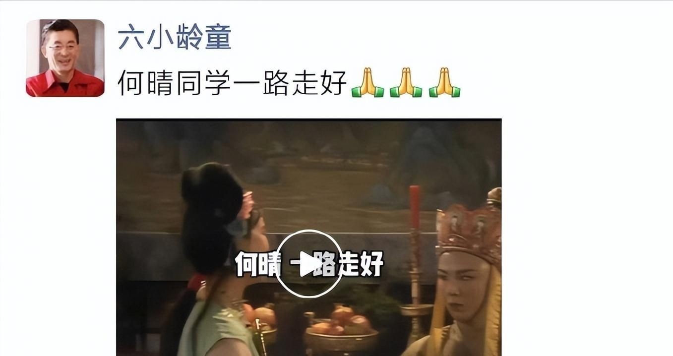 六小龄童也在一又友圈发文:“何晴同学沿途走好”,寥寥数字,情真意切。
