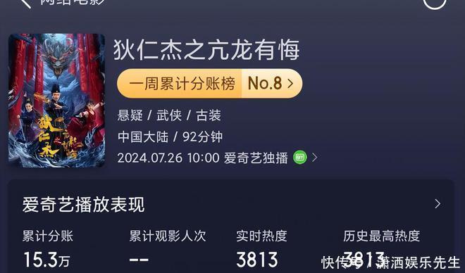 烂!张子健翻拍《狄仁杰》,制作快活差评一派,票房仅15.3万!