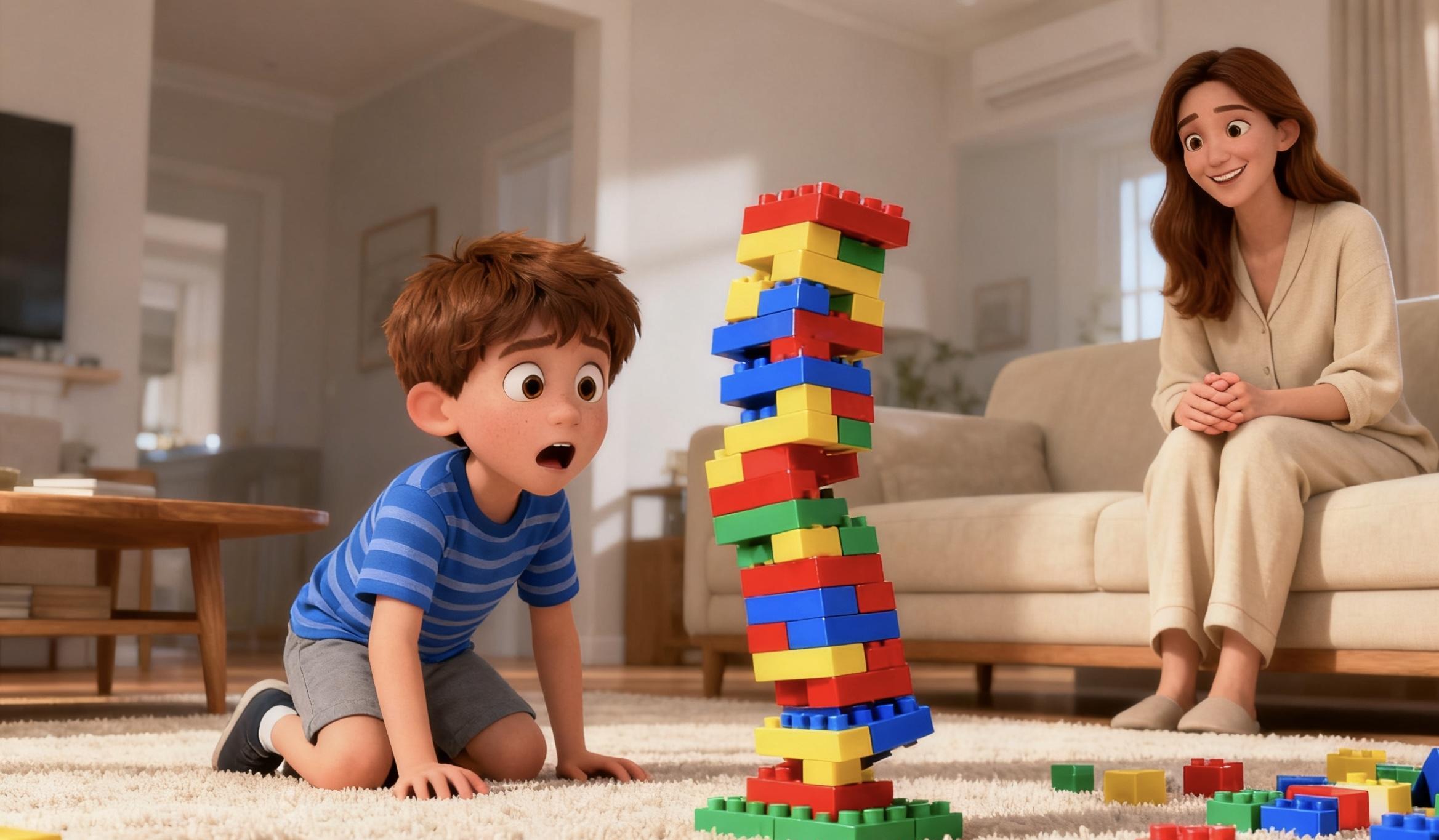 明知他用积木搭的塔会倒,也让他试。倒塌蓦地的“啊哦”,比一百次说教王人管用。