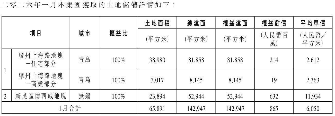 不雅点网 2月9日九游会J9,龙湖发布了2026年1月未经审核营运数据及新增地盘储备公告。