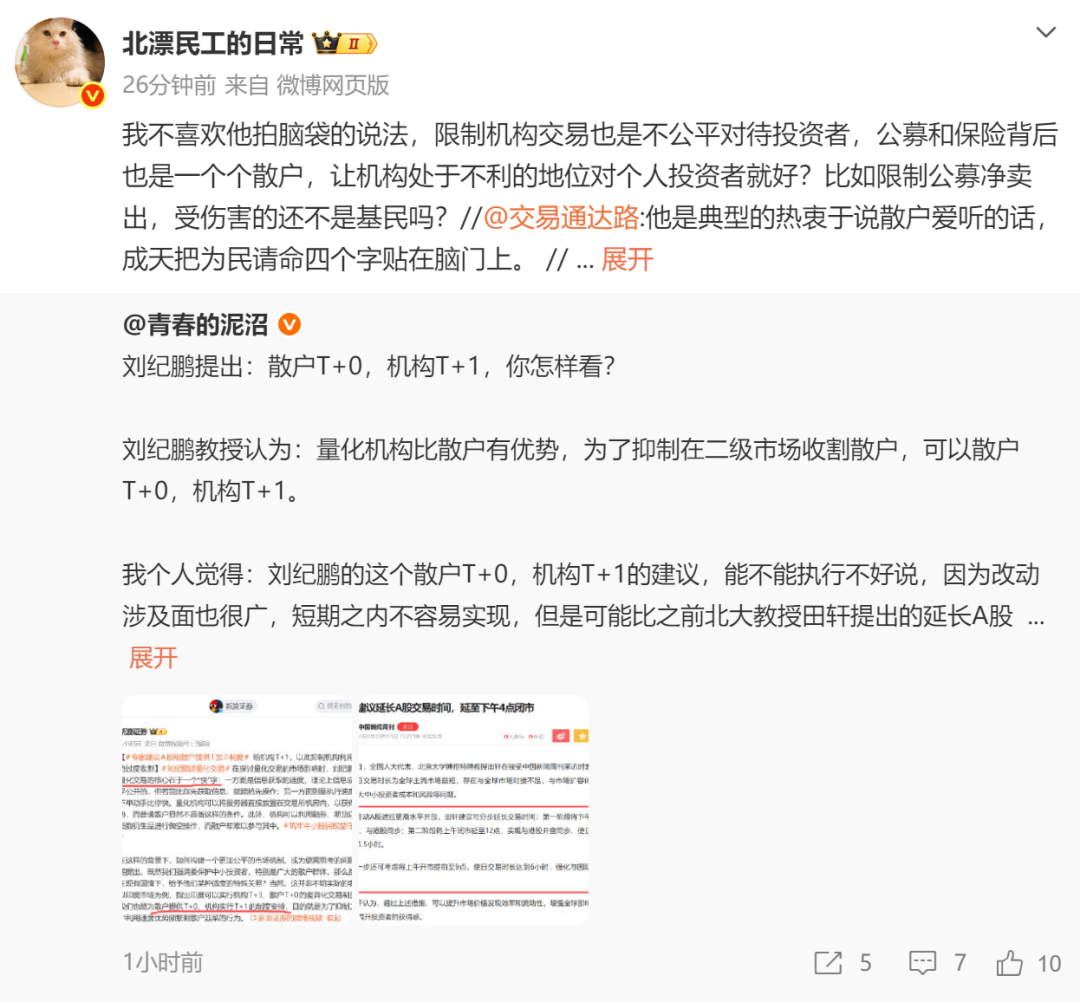 他以印度市集为例,指出印度不错实行机构T+3、散户T+0的各异化往复轨制。要是咱们也能为散户提供T+0、机构实行T+1的轨制安排,主义即是为了扼制二级市聚集诈欺速率上风常常割散户韭菜的作为。